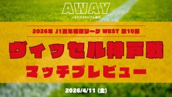 はじめに試合概要2026年J1百年構想リーグ第10節 ヴィッセル神戸 とのアウェイゲームは、2026年4月11日(土) 15:00からノエビアスタジアム神戸で開催されます現在の順位(WEST)順位チーム名試合数勝点得失点差1位ヴィッセル神戸...