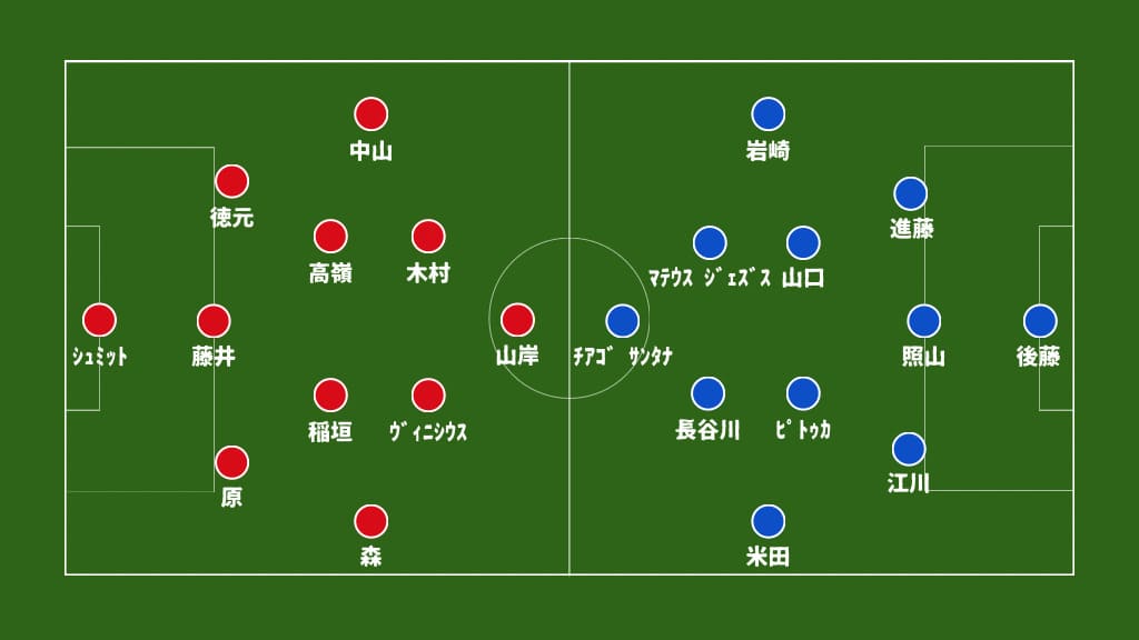相手のプレッシャーが強い場合、どうしてもボールはサイドに流れがちです。サイドから良質なクロスが上がれば、中央でヘディングの強い山岸、ヴィニシウスがゴールを決めるチャンスは増えると思います。そこでどれだけ決め切れるかは重要なポイントになりそうです。